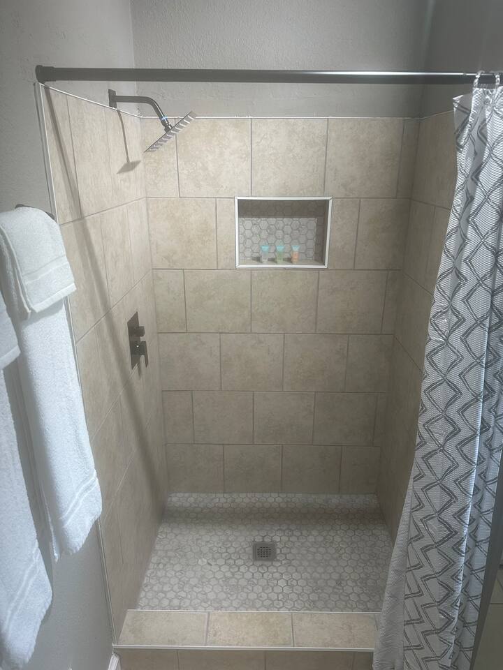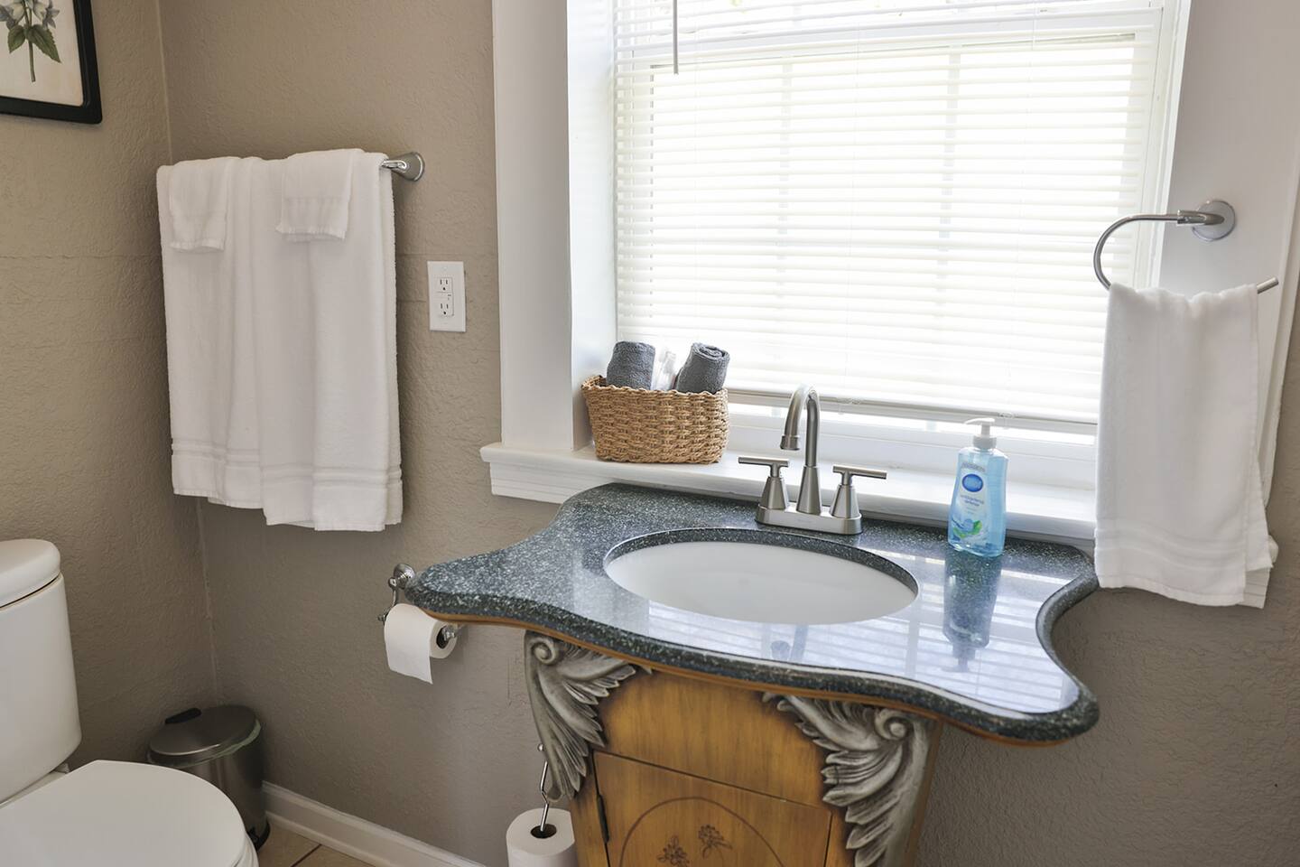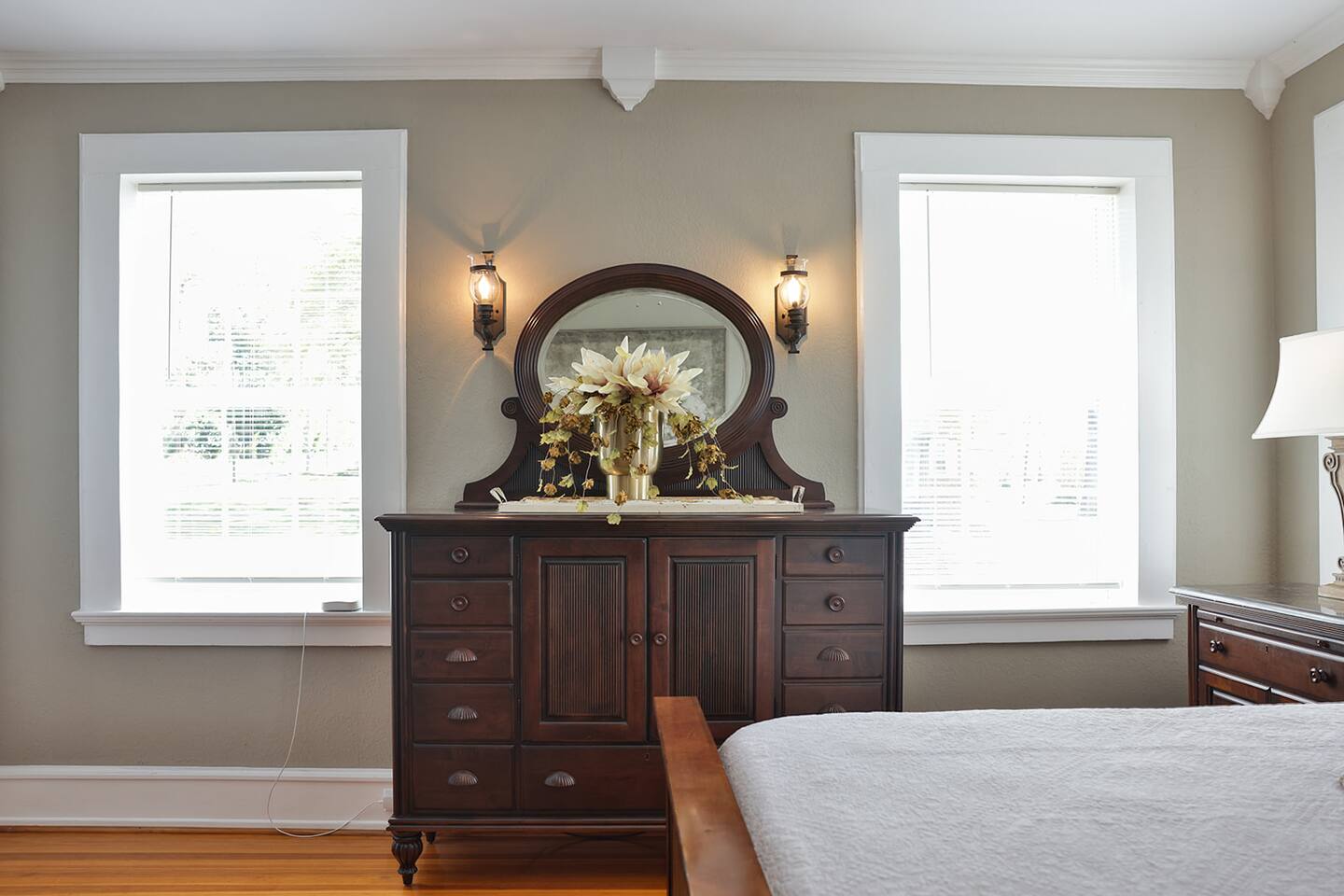 As you walk in the front door of this 100 year old home, you will love the gleaming hardwood floors , tall ceilings, huge rooms with tons of crown moldings and beautiful architecture throughout. On the main floor you have the large living room with a new couch, loveseat and a swivel chair with new coffee and end tables, a gorgeous fire place with new ventless gas logs and a large 60 inch Smart Tv sitting atop the mantle. Just past the living room is a beautiful and spacious home office with a large executive style desk with hutch and 2 blue Queen Anne wing back chairs with a Pembroke table in between. The office also has tons of windows and natural light and comes with a comfortable desk chair if you need to do a little work while away from home. On the left side of the foyer is a very generous dining room and comes furnished with a large dining table with 8 chairs, a matching sideboard with a great pair of Forty West Lamps and a blue willow foot tub with nice greenery. The dining room boast a stained glass light fixture and a small server with a nice pair of Staffordshire dogs. Just behind the dining room is a small breakfast nook with a table and 5 chairs and some extra cabinetry for storage. Just past the dining room is a large King suite with a beautiful mansion style King bed, 2 large granite top side tables and a large triple dresser and mirror. This bedroom also comes with a large fireplace with a brick hearth and a new set of ventless gas logs and a long mantle with a 55 inch Smart Tv resting on top of it. This room has its own private entrance door is the only bedroom on the first floor. The kitchen is located at the back of the first floor behind the breakfast nook and features tile floors, granite countertops, new stainless appliances including a double door refrigerator, smooth top electric stove, dishwasher, microwave and a Keurig coffee pot. It comes stocked with plenty of cooking utensils, silverware, pots and frying pans and some oils and spices in case you would like to prepare a nice homecooked meal. As you leave the kitchen you go to back of the house and there is a very spacious laundry room with a large capacity washer and dryer with plenty of clothes washing liquid and bleach and a nice iron and board if you need to spruce up your clothes. This room has new LVP flooring also has a partially exposed brick wall which adds a little charm to this space. Just off the foyer on the main floor, there is a full bathroom with a fully tiled walk in shower, a new vanity and toilet and a basket with make up washing cloths, soaps, lotion and extra tootbrush and toothpaste in case you forget yours. All bathrooms have a nice supply of towels and rags and extra toiletries. As you go upstairs you will love the beautiful winding staircase with a huge abstract picture on the right side and an old canvas portrait picture on the left side of the stairwell. At the top of the steps there is a nice full length mirror adjacent to the hall bathroom. The hall bathroom features tile floors and a nice tub/ shower combination, a very ornate vanity, a nice storage cabinet with a recessed mirror and plenty of extra toiletries and a hair dryer in case you forget yours. The master bedroom is furnished with a nice Mahogany King size bed, a large dresser, a nice chest with a hanging mirror and 2 mahogany night stands. It also has a nice wing back chair if you want to relax and read a book and comes with a large 60 inch Smart Tv. This room has some nice pictures and wall decor and the master bath has tile floors, a stand up shower, pedestal sink and plenty of extra toiletries if needed. Across the hall just past the hall bathroom are two more bedrooms. Bedroom 4 also features a beautiful King bed with 2 large side tables with pullout trays, a nice triple dresser and mirror and a large entertainment center with a Smart Tv as well. This bedroom has beautiful crown and base moldings, a large floral picture and some original exposed brick behind the bed which adds a nice touch to this bedroom. Bedroom 3 features a gorgeous, heavily carved French style Queen bedroom suit with 2 side tables and and heavily carved chest with a Smart tv on top. This is one of the prettiest bedroom suits I have seen and you will love how it looks in this upstairs bedroom. There is also a closet at the top of the stairs beside this bedroom that holds extra towels, wash cloths, sheets etc. The exterior of this property features a nice and level front yard with some nice landscaping and flower beds. At the rear of the house is a large paved parking lot with plenty of room to park your cars or trucks and a lovely pergola with an outdoor table and 6 chairs if you need to get some fresh air. This property is located in the heart of Anniston less than a mile from the entertainment district in downtown Anniston.