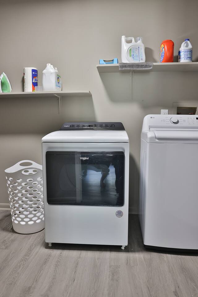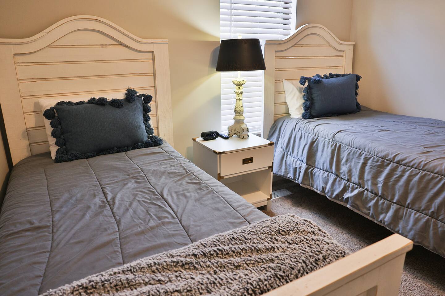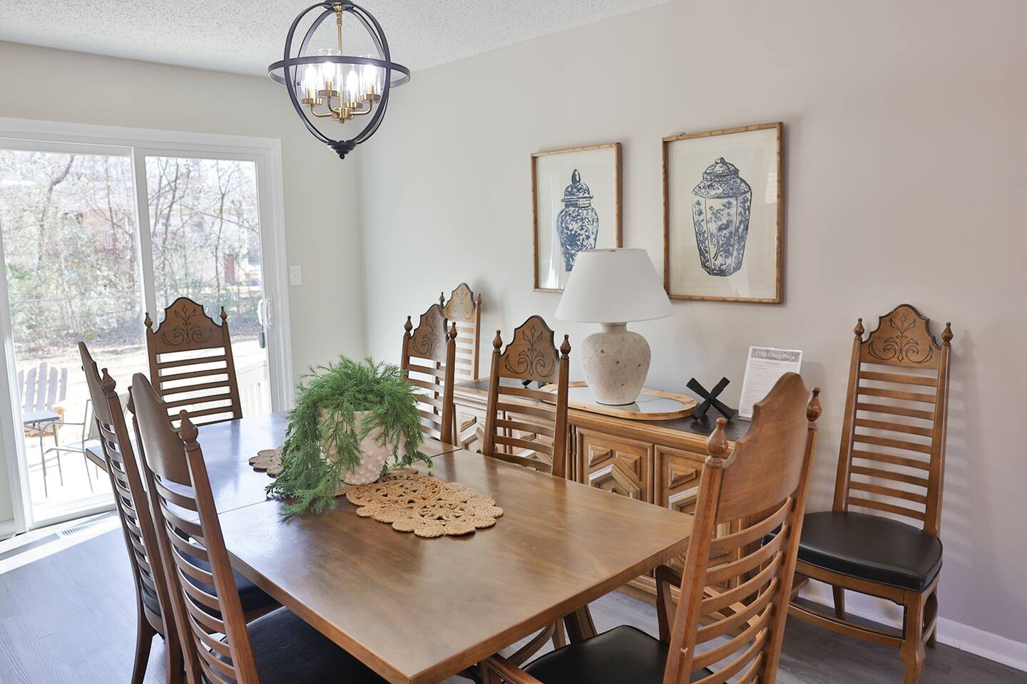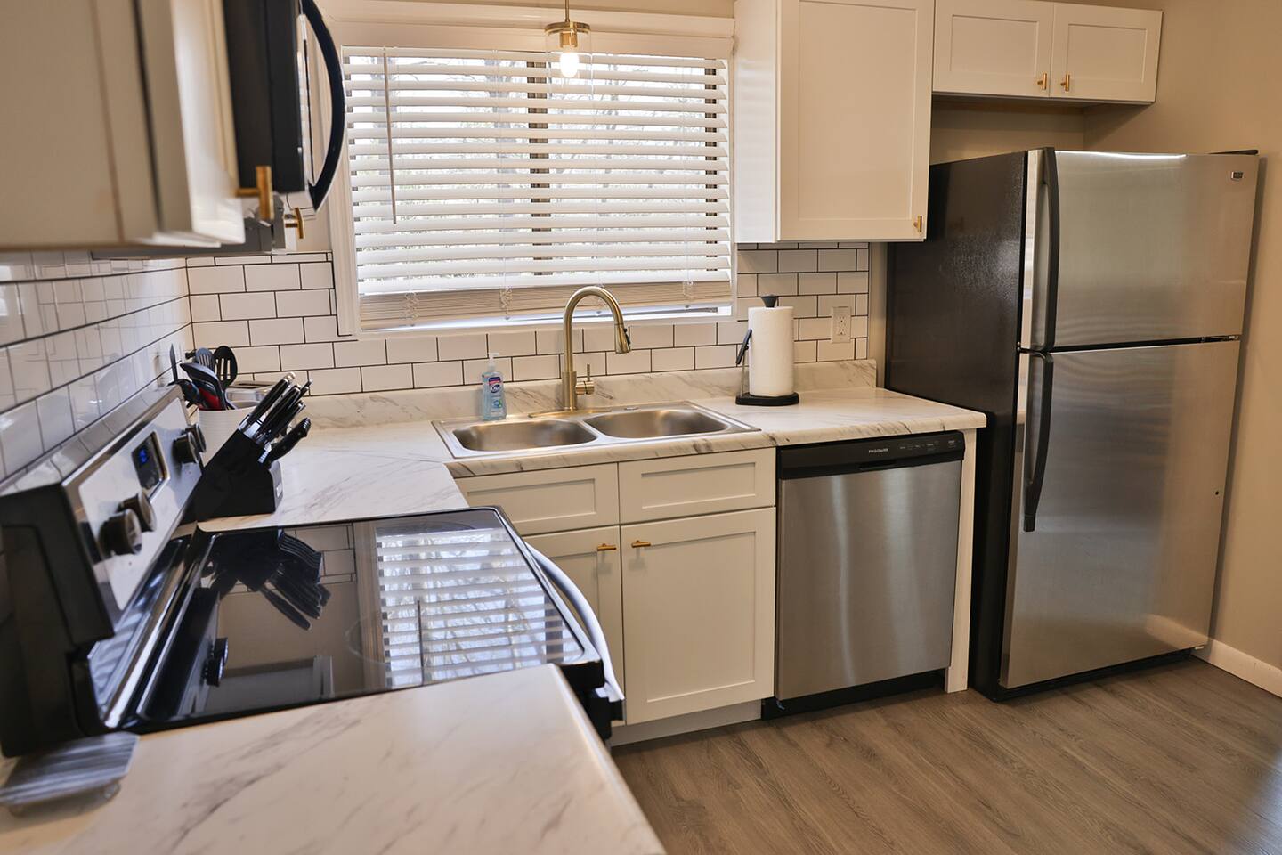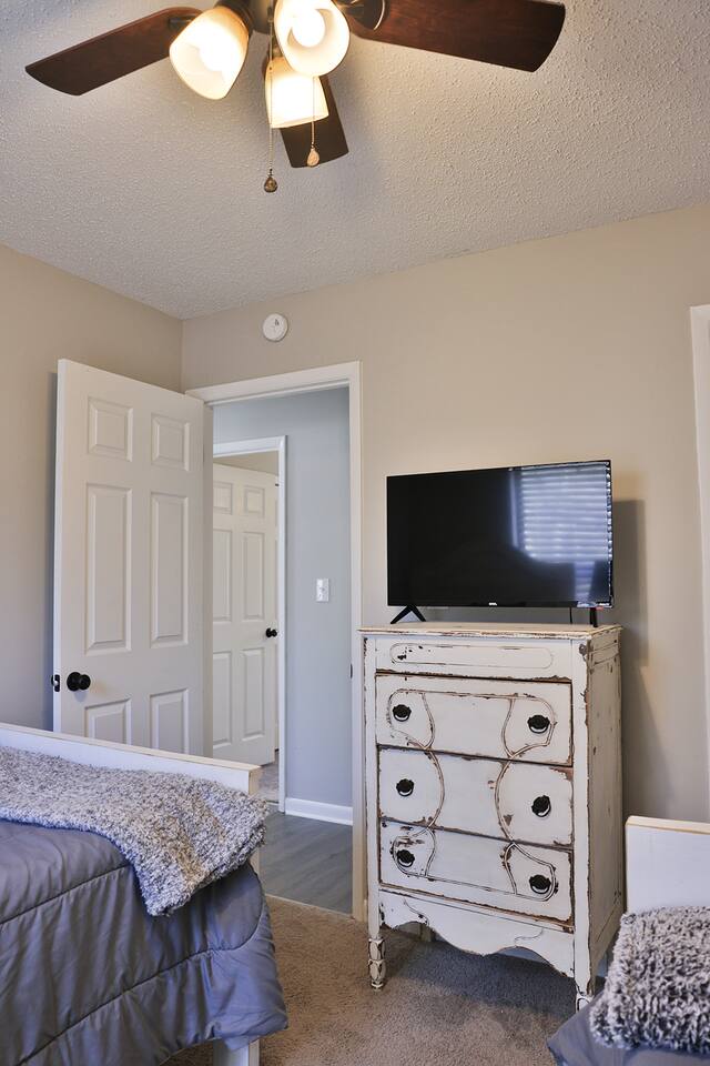 As you walk in the front door you will enjoy the open concept between the living and dining rooms in this recently updated rancher. The living room has a nice couch, loveseat and a recliner with a nice wood burning rock fireplace, stylish coffee and end tables and a 60 inch Smart Tv. The dining room has a nice table with extra leaves, 8 chairs and a matching sideboard. The kitchen features bright white cabinets, stainless appliances including a refrigerator, electric stove, dishwasher and microwave, a nice subway tiled backsplash and a coffee bar with coffee, creamer, sugar and other complimentary condiments. There are plenty of dishes, silverware, pots and pans etc if you want to prepare a nice, home cooked meal. The master bedroom has a nice King bed with 2 dressers, 2 nightstands, a desk, 60 inch Smart Tv and a private bathroom with a fully tiled walk in shower, a new toilet and a new vanity and mirror. The second bedroom has a queen bed with 2 side tables, mirrored dresser and a 50 inch Smart Tv. The third bedroom has 2 twin beds, nightstand and a chest of drawers with a Smart Tv. The hall bathroom has new tile floors, new vanity and toilet and a tub shower combo with a tiled tub surround. There is some individual shampoo, conditioner, soap, toothbrush etc available in case you happen to forget some of those items. There is a nice Gameroom just off the kitchen with a pool table, darts, cornhole boards etc and a nice big screen TV and some some extra seating. There is a nice sized laundry room with a washer and dryer, iron and board and with washing powders if you need to wash some clothes. This home is located in a very convenient location that is less than 2 miles from I-20 and Choccolocco Park as well as grocery stores, gas stations and restaurants.