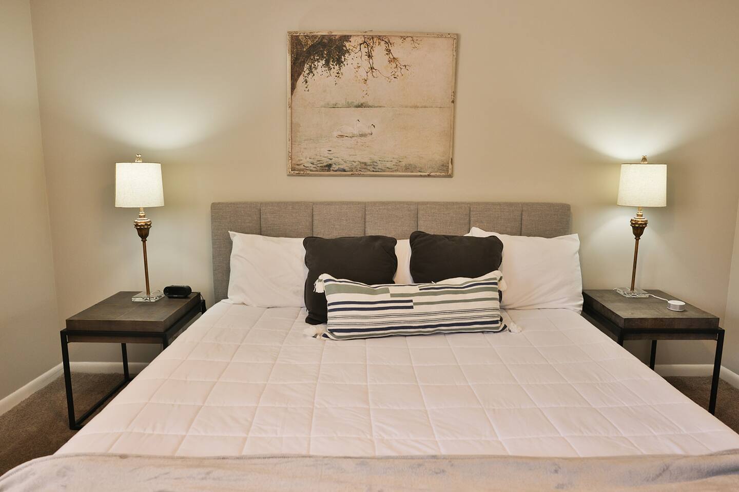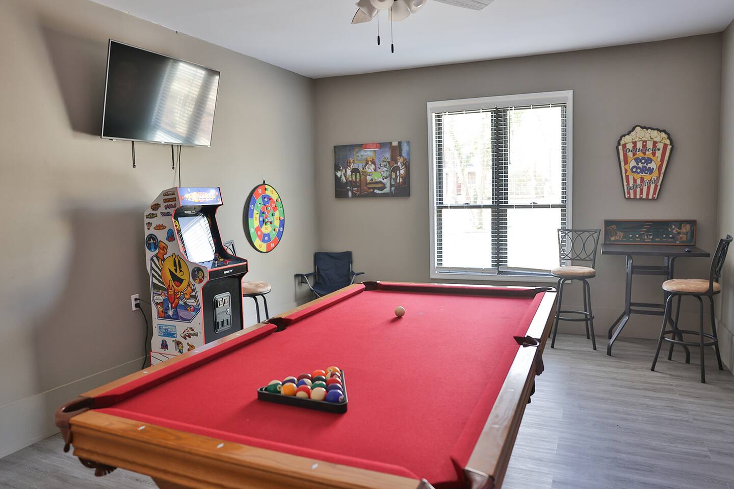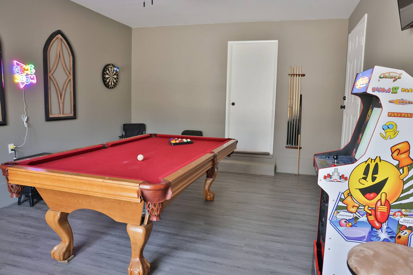 Completely remodeled stepless rancher featuring a gameroom w/pool table and located on a quiet, dead end street •3 BR/2Ba with 1 K, 1Q, and 2 twin beds w/Smart TV’s •Snacks, coffee, water and some basic condiments •2 miles to Choccolocco Park, I-20, Anniston CMP, the Oxford Exchange, grocery stores and Restaurants •18 mi to Talladega Speedway and CMP, Cheaha State Park and JSU •Fully stocked house with all appliances, dishes, and linens in your home away from home!