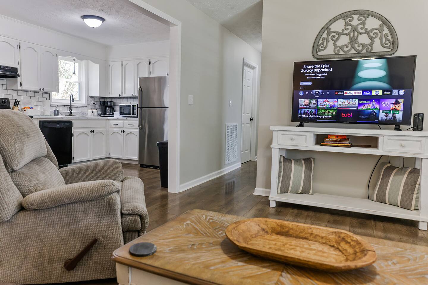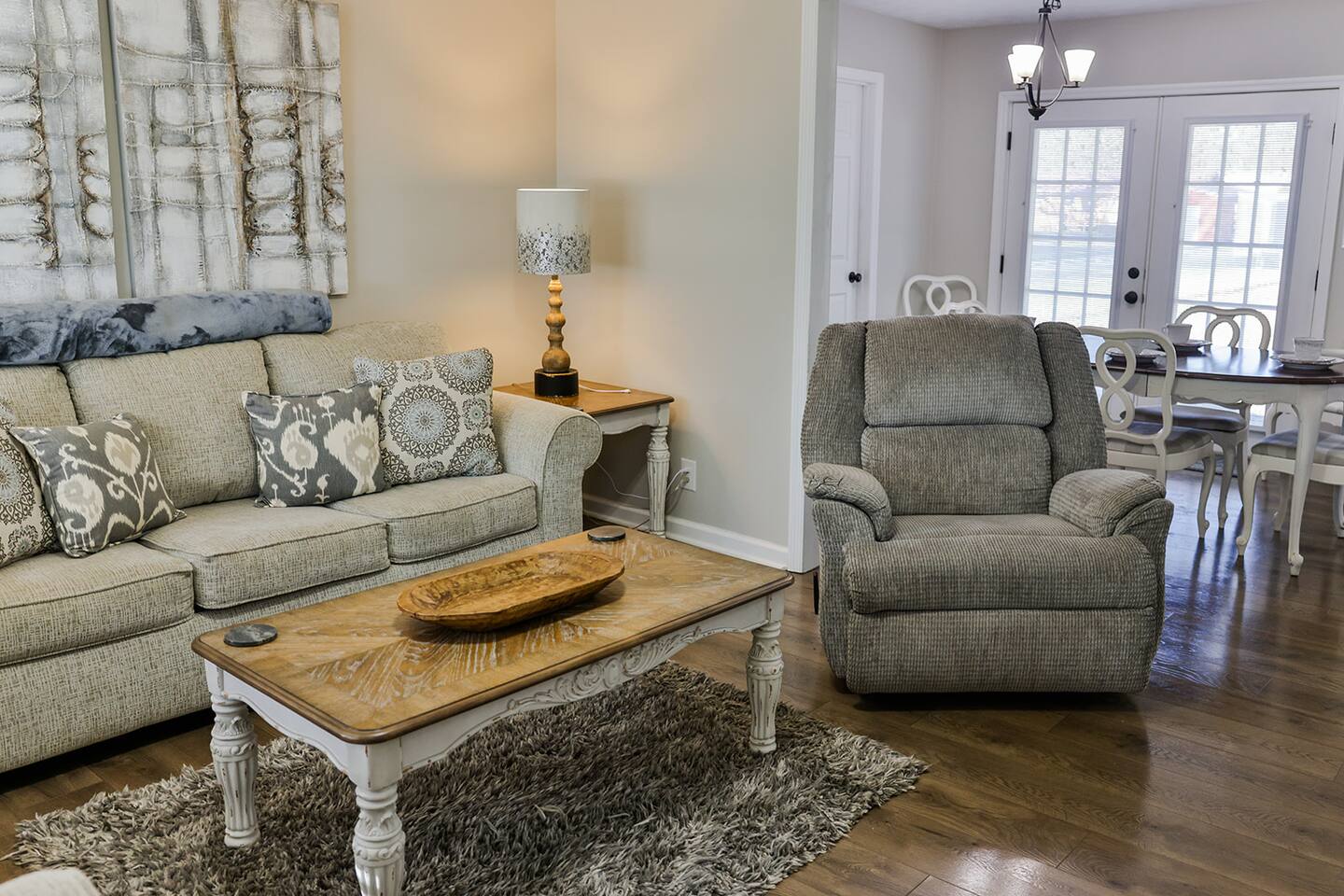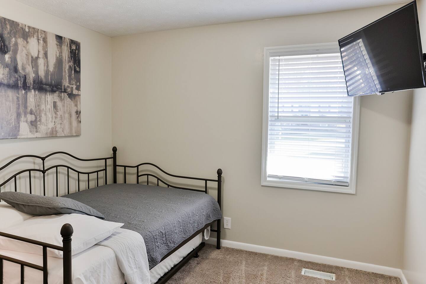This is a very quiet and family friendly neighborhood that is just minutes to all the restaurants, grocery stores, shopping malls, movie theaters, antique shops, golf courses including the Robert Trent Jones golf trail, and has a nice fenced in backyard with corn hole boards just waiting to be played on. Very easy to get in and out and in a very safe area.