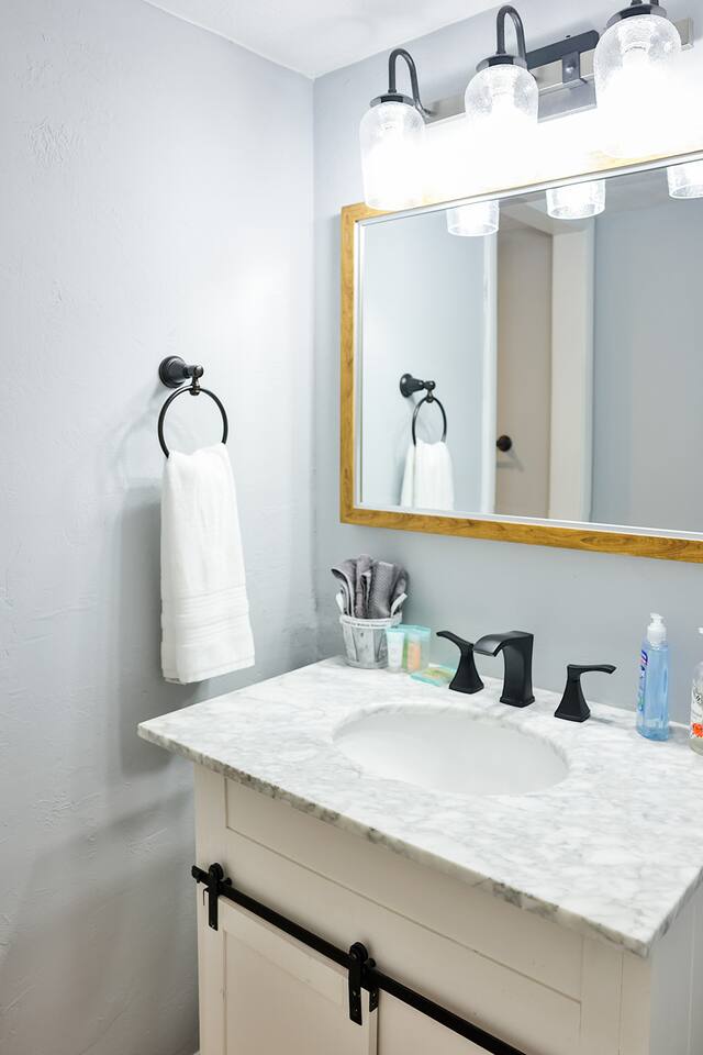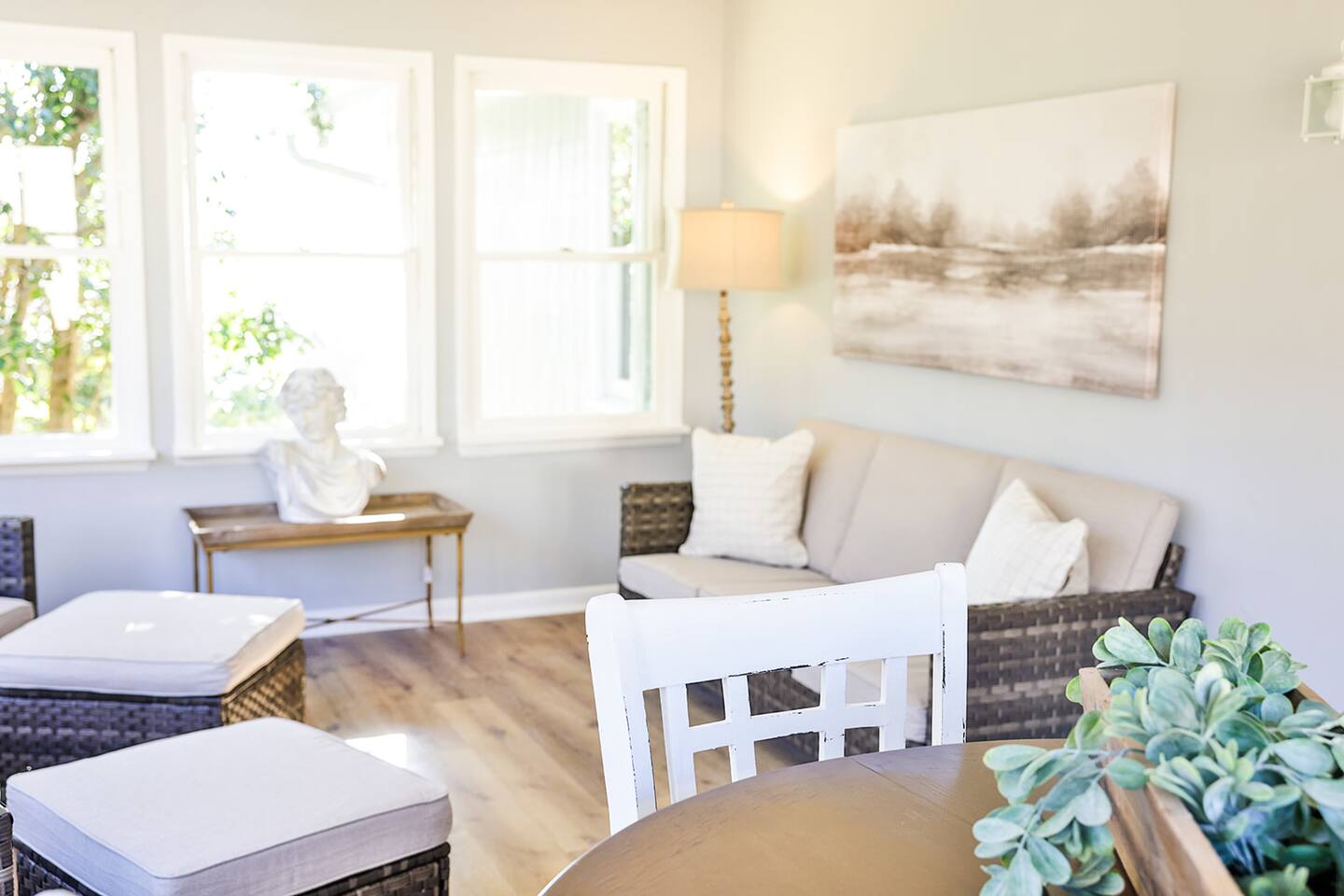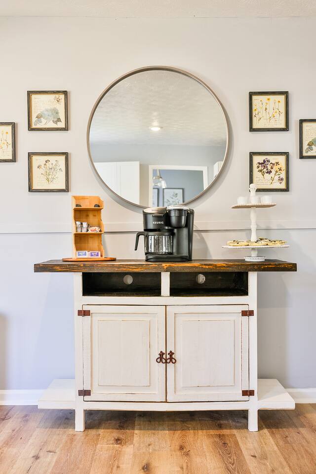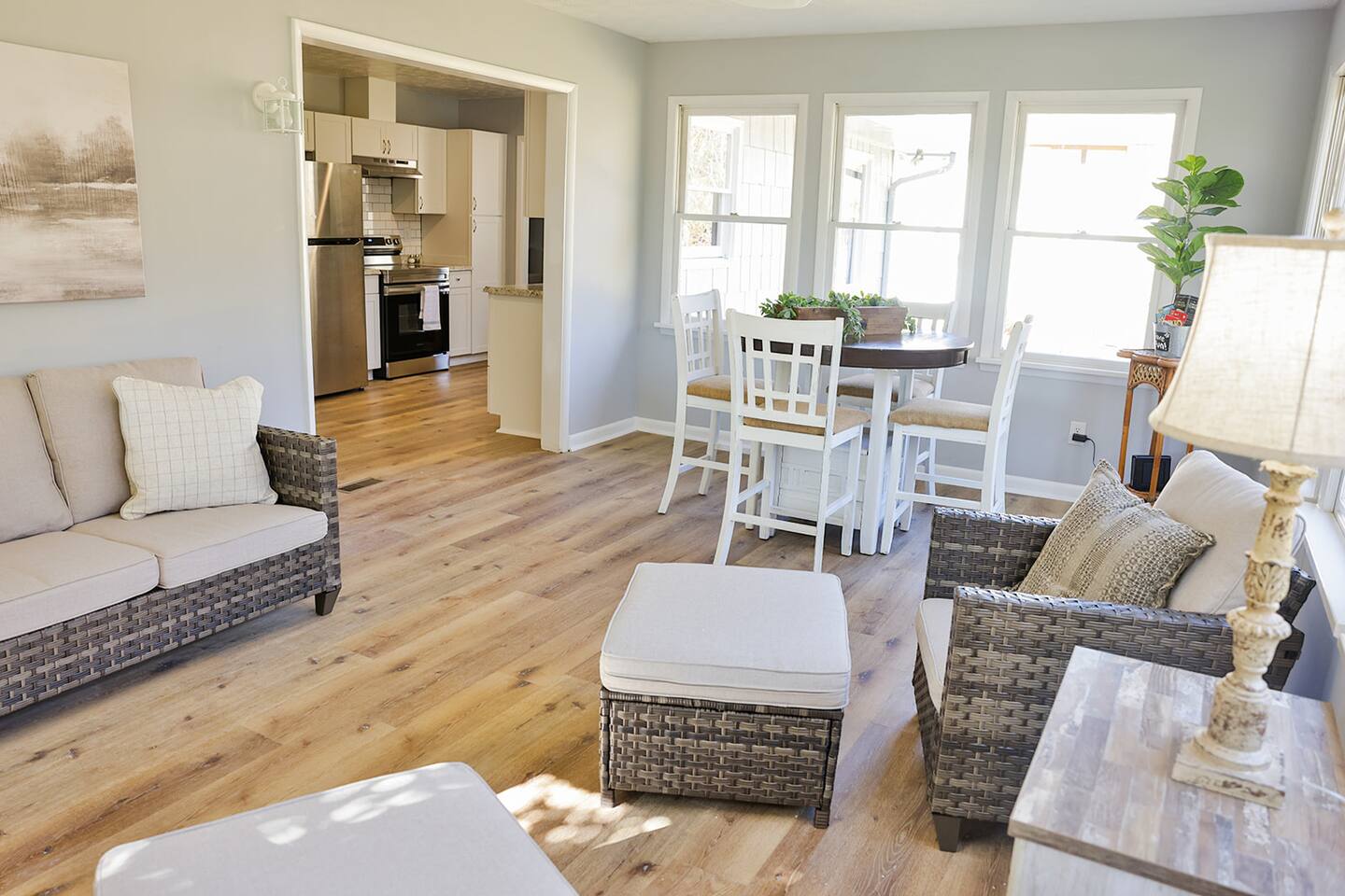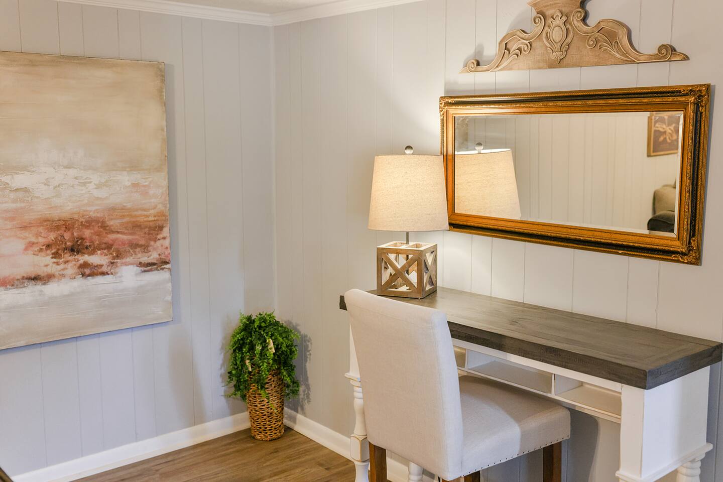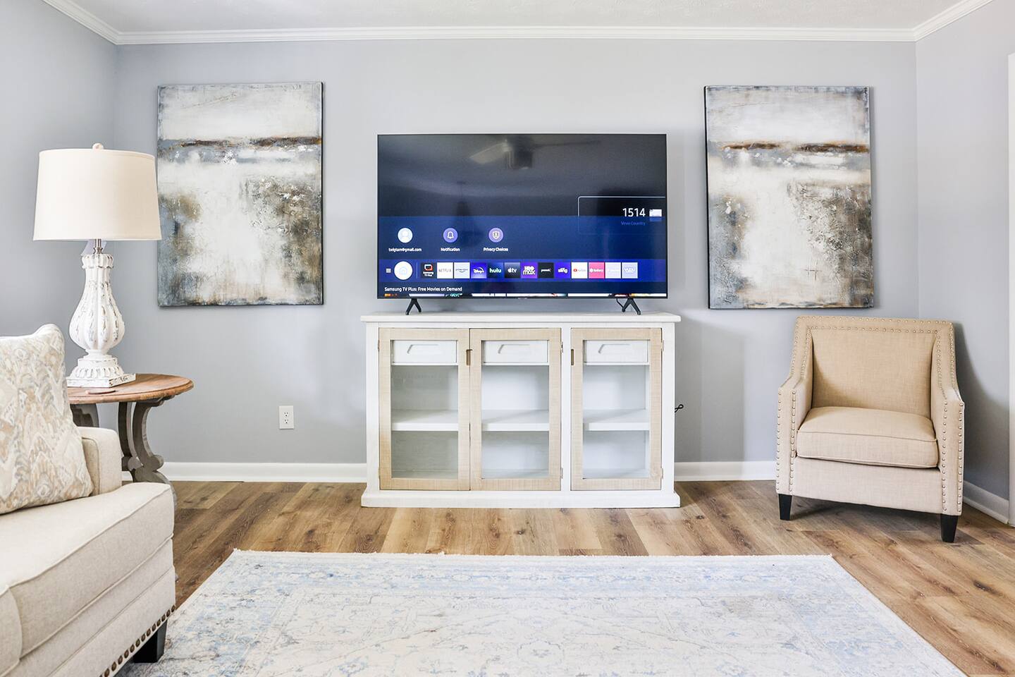 This large home has been completely remodeled with very spacious rooms and very tastefully decorated. It has 2 large living areas plus a very large sunroom so it has plenty of room for all the family. The sunroom is huge and is all windows with tons of natural light with a small breakfast set and lots of extra seating to enjoy that morning coffee or relax and read a book. Both living rooms have a nice couch and loveseat, coffee and 2 end tables, extra upholstered chairs for seating and nice Flat sreen Smart Tvs to watch your favorite shows or movies. Upstairs features 3 large bedrooms (2 kings and 1 queen) and 2 full baths plus the kitchen, formal dining room, living room and a huge sunroom. Downstairs features a 4th bedroom with a twin and full bed with a Smart Tv, a second living room with a brick fireplace with gas logs and 55 inch smart tv with a work desk and a 3rd full bathroom. The large master bedroom features a very nice KING size bed with two nightstands, large dresser, 2 extra chairs for seating and a large 55 inch Smart Tv. It also has its own en-suite bathroom with a new vanity, new toilet and a nice step in shower. The second bedroom also has a KING bed with 2 nightstands, large dresser and a 55 inch Smart Tv. The 3rd bedroom has a QUEEN bed with a large dresser and mirror and 2 night stands and a Smart Tv and the 4th bedroom downstairs has a full and a twin bed with a chest, night stand and a Smart Tv. The kitchen comes fully equipped with lots of utensils, pots and pans, Keurig coffee maker with all the condiments, toaster, blender, etc and all kitchen appliances ( refrigerator, stove, dishwasher and microwave). This kitchen has all you need to provide a nice, home cooked meal for the entire family. There is a nice formal dining room just off the kitchen and upstairs living room that features a nice dining table and 6 chairs, a matching sideboard and is tastefully decorated with nice lamps and wall decor with a splash of greenery to enhance the space. The garage is converted into a reallly nice GAMEROOM with a pool table, ping pong table, foosball table, darts, cornhole boards, Pac-Man table top game and a Hookey game for the children. This is a great addition to this house and a place for the whole family to gather and share some quality time together. There are also several classic card games available.