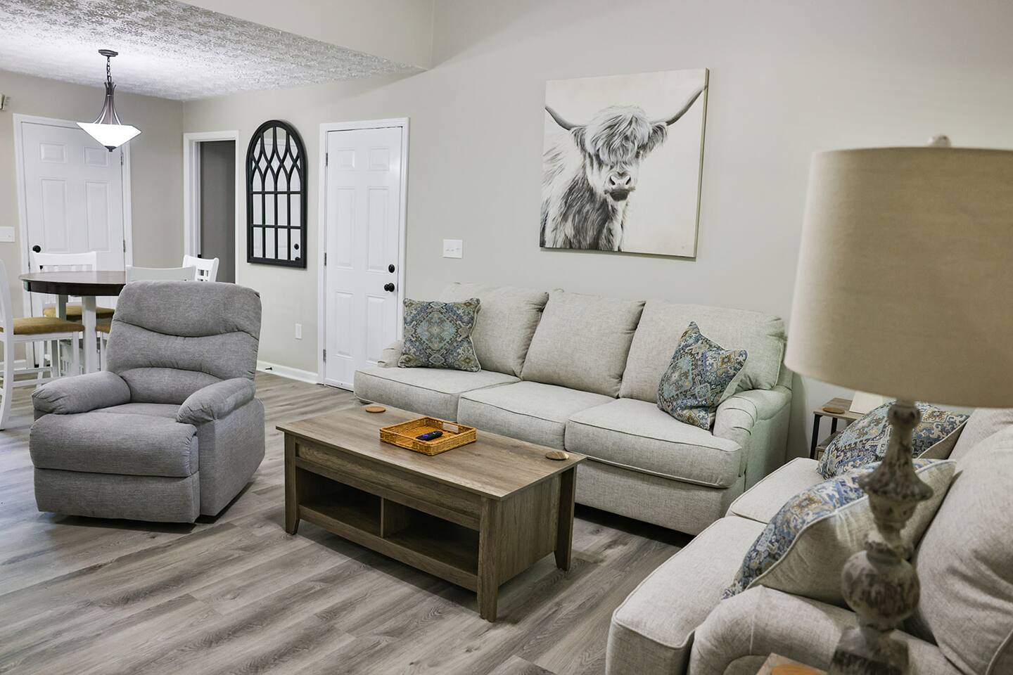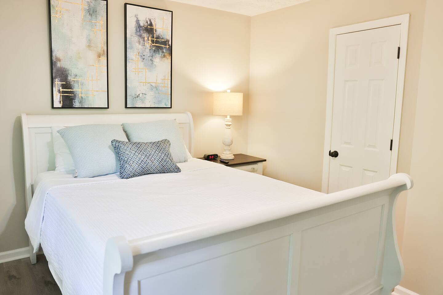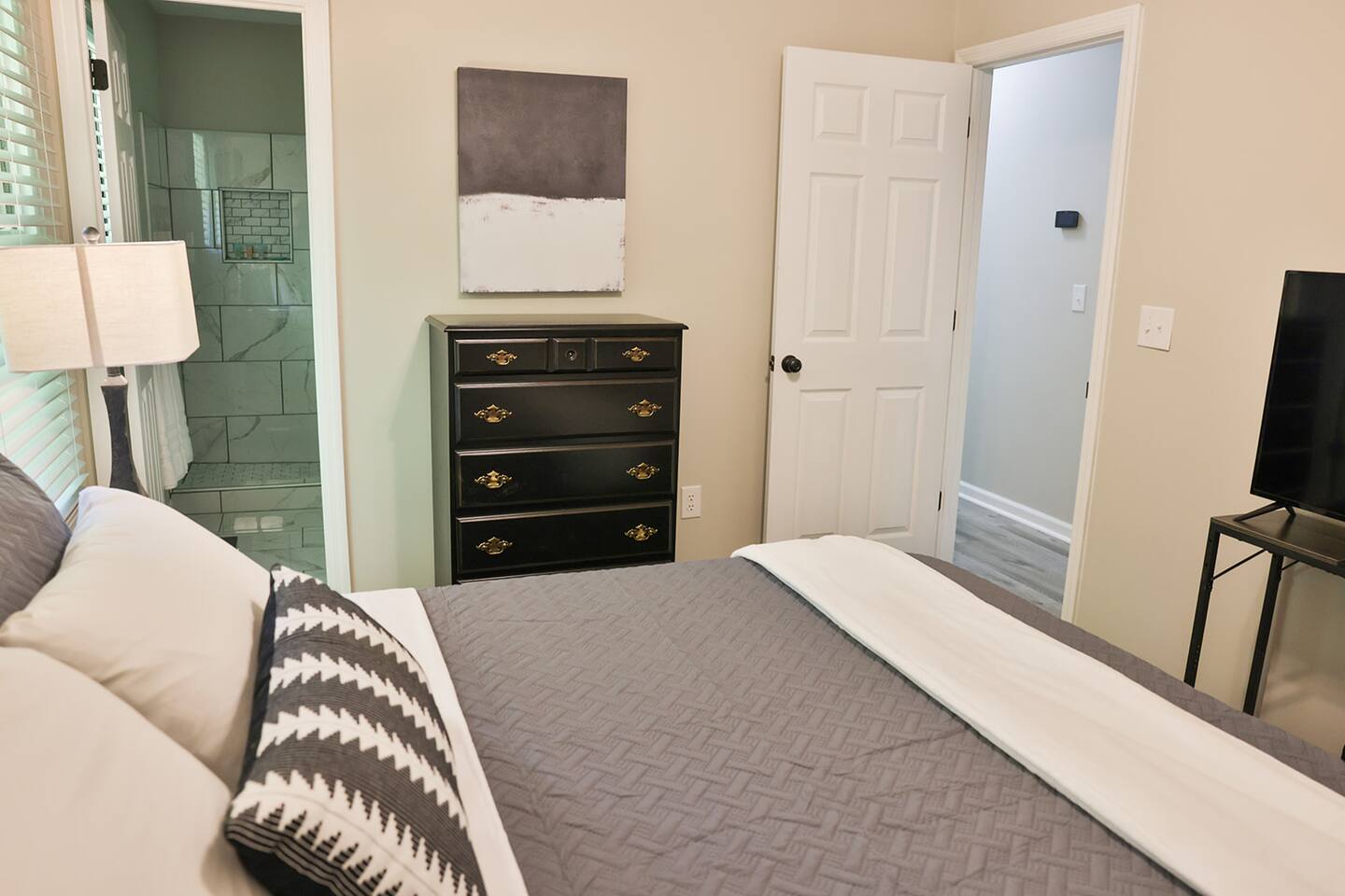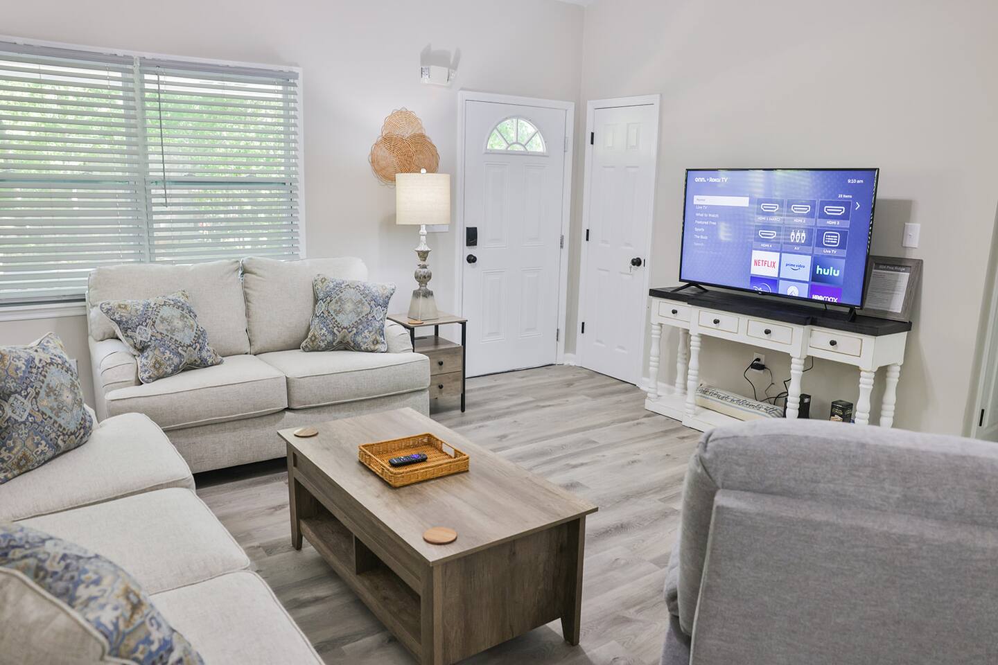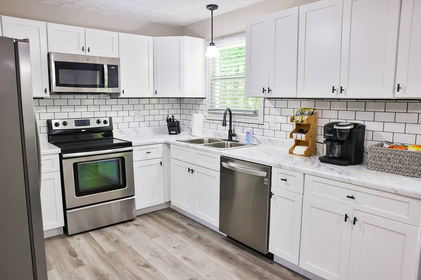 Completely remodeled 3 br/2 ba completely updated home with all the conveniences you would enjoy at your own home! This home features a nice open concept with a nice living room with a couch, loveseat and recliner and a 55 inch Smart Tv. The kitchen features new bright white cabinets with new countertops, stainless appliances with a double door refrigerator, smooth top stove, microwave, coffee pot and dishwasher with plenty of plates, pots pans and cooking utensils to prepare a nice, home cooked meal. There is also a nice high top table and 4 chairs to eat from or enjoy your morning coffee. The master bedroom has a King Bed with a nice 45 inch Smart Tv with 2 nightstands, chest of drawers and nice wall decor including a full length mirror to dress in front of. It also has its own private bath with fully tiled floors and a fully tiled walk in shower with a new toilet and a new vanity. We provide starter set of shampoo, conditioner, lotion, toothpaste and brush and a hair dryer if you forget yours. The secondary bedrooms have Queen beds with a night stand and a chest of drawers to store your extra clothes and both of these bedrooms also have a Smart Tv in them as well. These rooms are tastefully decorated and we provide plenty of pillows and extra blankets if needed. The hall bathroom has also been completely remodeled with new tile floors, new tub and tiled tub surround, new vanity with mirror and a new toilet. We provide plenty of towels and extra sheets should you need them. This home is located on a very quiet, dead end street and is very conveniently located to Choccolocco Park, The Oxford Exchange shopping mall, I -20, Coldwater Mountain Bike Trails and all the nicest restaurants.